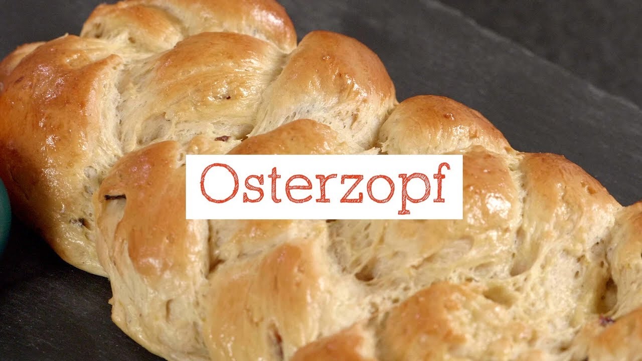 Teig auf leicht bemehlter Arbeitsfläche noch einmal gut durchkneten und in vier gleich große Stücke teilen. Jedes Stück zu einem Strang rollen. Die Teigstränge auf das Blech legen und zu einem Zopf flechten. Den Zopf zugedeckt gehen lassen, bis er sich sichtbar vergrößert hat. In der Zwischenzeit den Backofen auf etwa 180 Grad Ober- und Unterhitze vorheizen.