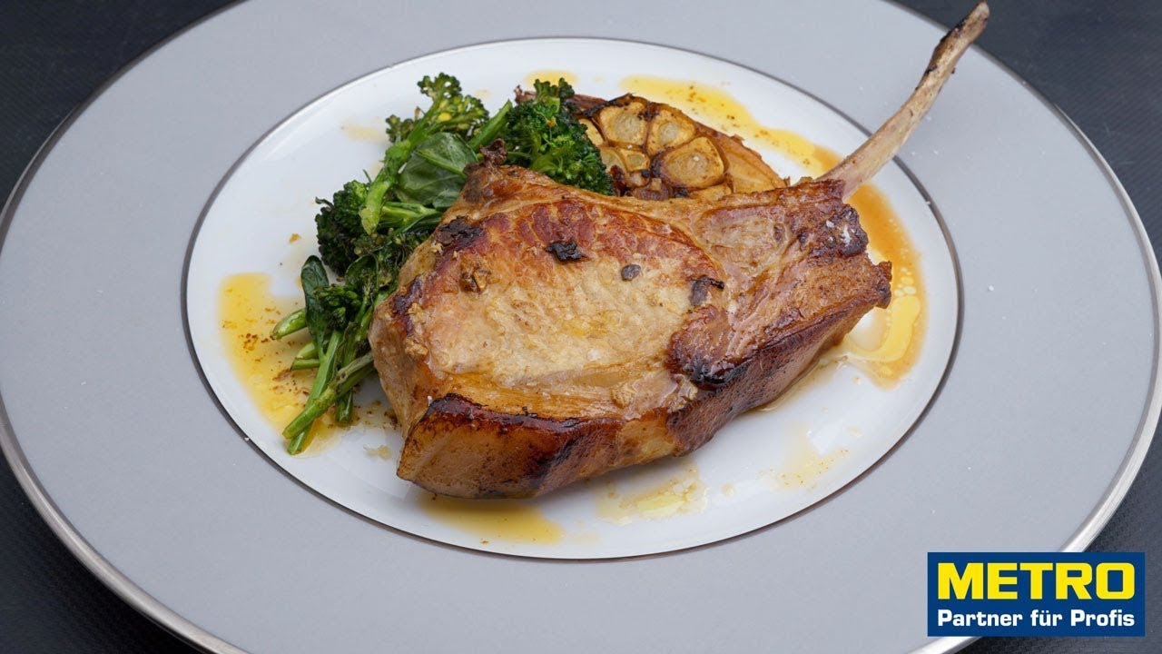 Das Downgrading von Schweinefleisch geht mir nicht in den Sinn, vor allem, wenn ich so ein Prachtkotelett vom iberischen Duroc-Schwein in der Pfanne liegen habe. Dort leben die Ibérico-Schweine teilweise wild und werden mit Eicheln und Kräutern gemästet. Das Fleisch ist zart nussig und saftig, nicht nur als Schinken verdient es seinen Ruhm. Aaron Waltl (Food Scout von Metro) und Karoline Scheucher von Steirer-Fleisch bringen mich vollends auf den Geschmack. Hoch lebe das Schwein. Jetzt im Kochsalon.