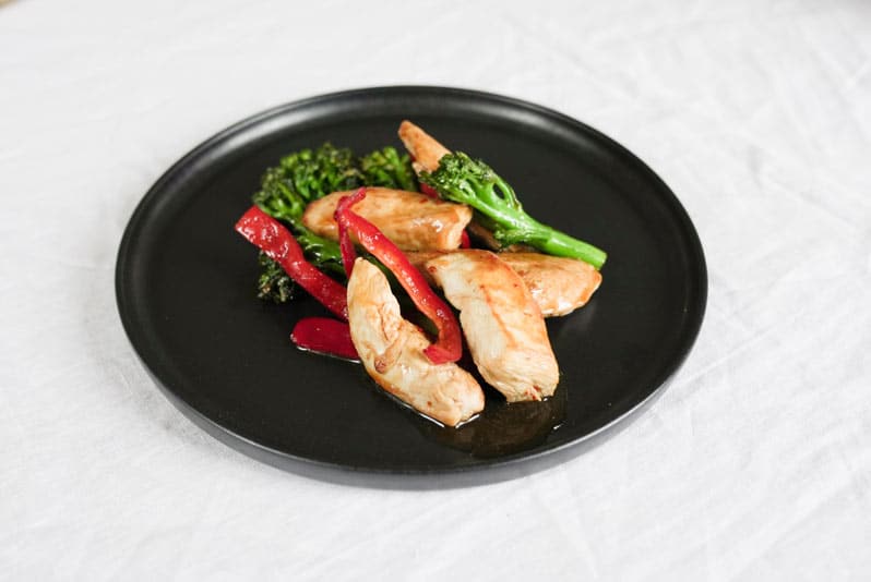 Alle Zutaten für die Sauce verrühren und in die Pfanne geben. Kurz mitköcheln lassen. Sollte die Sauce zu schnell verkochen ein bisschen Wasser hinzufügen. Mit Salz und Chiliflocken abschmecken und anrichten.